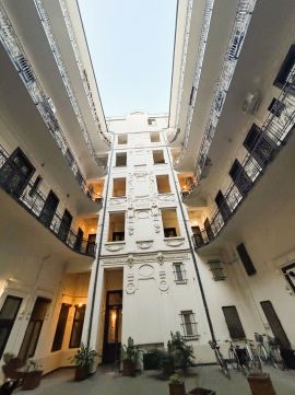 An exceptional luxury apartment is offered for sale in one of the most prestigious and architecturally impressive buildings of Budapests 5th district, located just steps away from the famous theatre Vígszínház.