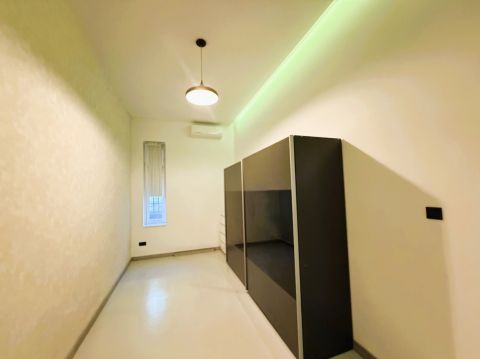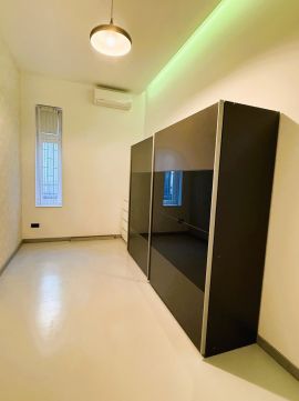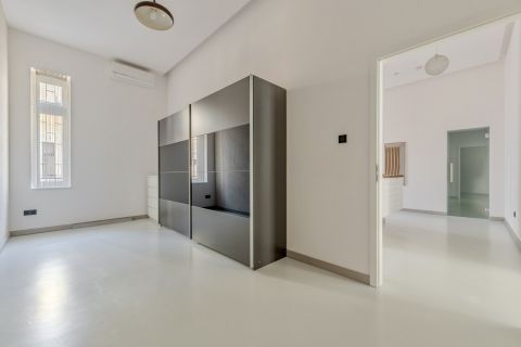 The property is located on the 4th floor and offers 120 sqm according to the title deed (125 sqm in reality) with an impressive ceiling height of 3.7 meters, creating a spacious and elegant atmosphere.