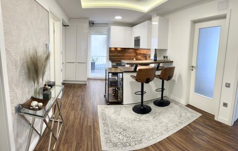 Az ingatlan 2020-ban teljes körű, prémium felújításon esett át, amely során a teljes belső szerkezet, az aljzatbeton, valamint a közfalak is megújultak. Az új falak dupla hangszigetelő réteggel és extra hangszigeteléssel készültek, míg a teljes aljzat tökéletesen sík, padlófűtéssel kombinálva lett kialakítva. A padlóburkolatot ConceptFloor Design Vinyl alkotja, mely modern és elegáns megjelenést biztosít.