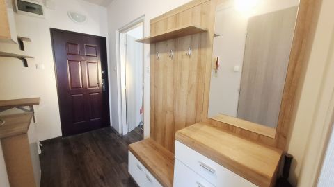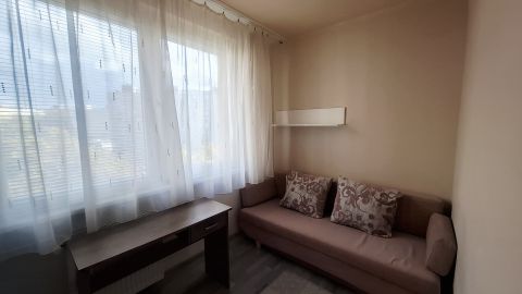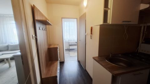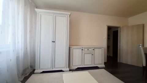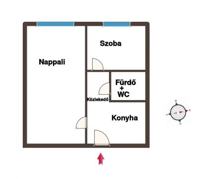 Az ingatlanba érve balra találjuk a tágas és napfényes nappalit, ahol még étkezőnek is jutott hely. A bejárattól jobbra található  a konyha, majd tovább haladva jobbra a felújított fürdőszoba a WC-vel. A Bejárattal szemben találjuk  a hálószobának is alkalmas félszobát. Laminált padló található  a szobákban, a többi helység pedig hideg burkolatokat kapott.