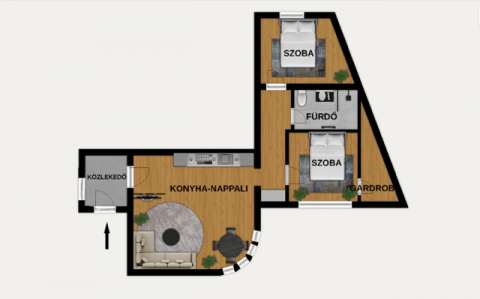 A lakás elrendezése praktikus és tágas: