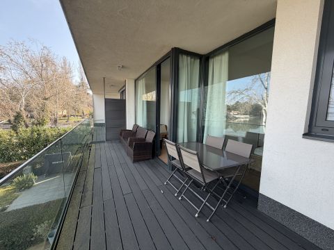 Eladó privát kertkapcsolatos, balatoni panorámás lakóparki lakás Siófok Aranypartján!
