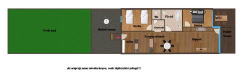 - Saját tároló, amely a többi lakással ellentétben közvetlenül a lakás és a kert mellett helyezkedik el, rendkívül praktikus megoldást nyújtva (kerékpár, strandfelszerelés, kerti bútorok tárolására)