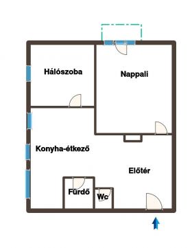 -2 különnyíló szoba, konyha-étkező, tágas előtér, fürdő, wc külön helyiségben