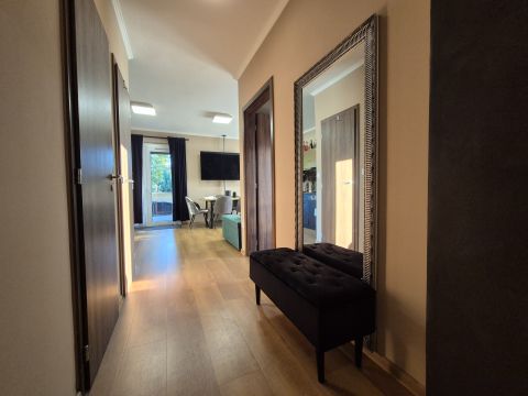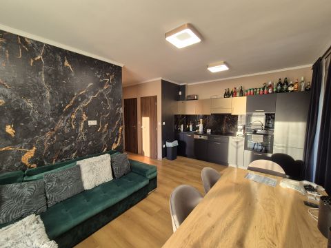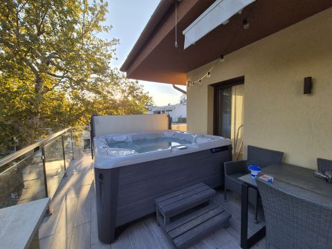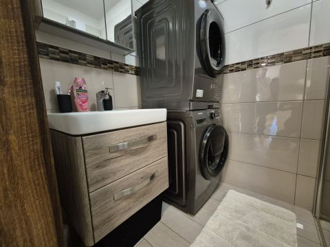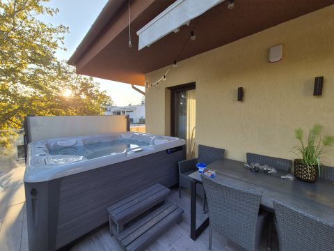 2 hálószoba, varázslatos nappali, modern, kompletten berendezett konyha, 2 fürdőszoba került kialakításra. Az 50 nm-es erkély maga a földi paradicsom, jakuzzival, kerti bútorokkal. Az ingatlan teljes bútorzottal, mosógéppel, televíziókkal felszerelt, azonnal birtokba vehető. Saját parkolóhely biztosított a zárt, elektromos kapuval körbezárt udvaron.
