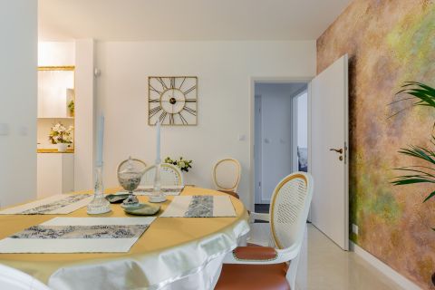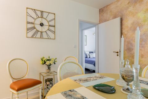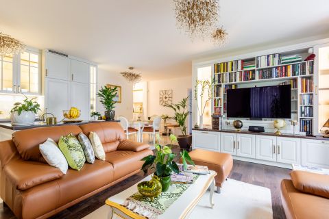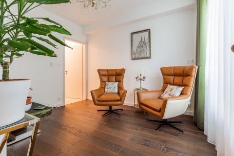 A lakás enteriőrje az arisztokratikus elegancia és a XXI. századi luxus tökéletes harmóniáját teremti meg. A főúri pompát idéző klasszikus jegyek és a letisztult modern design összefonódása olyan atmoszférát eredményez, amely egyszerre klasszikus és kifinomultan élhető. Az extravagáns esztétikumot a legmodernebb technológiai megoldások fűszerezik, így a múlt és a jelen grandiózus találkozása minden szempontból lenyűgöző élményt nyújt.
