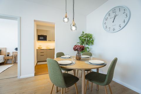 A 4-es metró bejárata mindössze 400 méterre van, a Kelenföldi pályaudvar és az Etele Pláza is gyalogosan elérhető.
