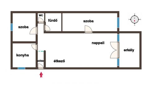 A lakáshoz tartozik még egy 8 nm-es részben fedett erkély, amely tökéletes helyszíne lehet a nyugodt reggeli kávézásnak vagy esti pihenésnek.