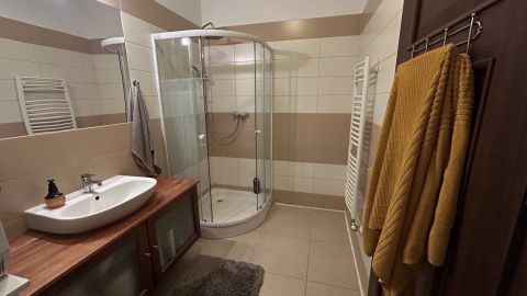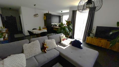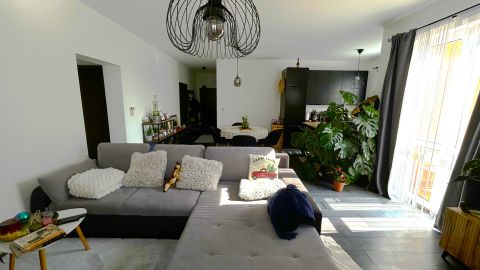 A lakás egy 2010-ben épült, igényesen kivitelezett, 8 lakásos társasház első emeletén található. Alapterülete 95 m², elrendezése nappali + 3 hálószoba, dupla komforttal, valamint egy 21 m²-es, L alakú, több helyiségből is megközelíthető terasszal, amely tavasztól őszig kiváló életteret biztosít. A 105 nm a lakóterület és a terasz felével számolva jön ki.