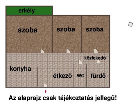 3 különnyíló szoba, étkező, konyha, fürdőszoba, külön WC, erkély.