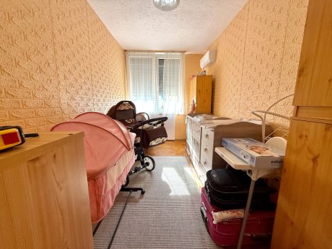 A lakás hat éve lett festve, falain tapéta ad otthonos hangulatot.