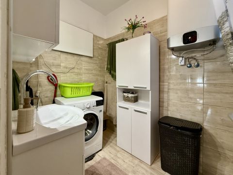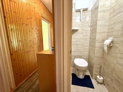A fürdőszoba és a külön WC teljeskörűen megújult, új burkolatokkal és szerelvényekkel.