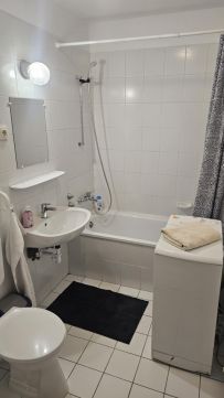 A fürdőszoba nagy méretű, mosógép rendelkezésre áll.