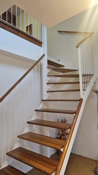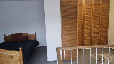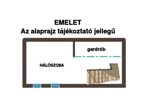 Az emeleti szintre kényelmes lépcsőn jutunk fel, komplett gardrób szekrény került beépítésre, a hálószoba mérete ideális minden korosztálynak.