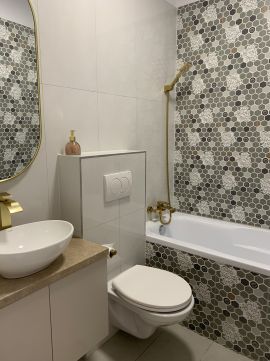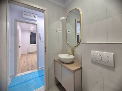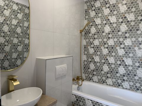 Az elektromos hálózat teljes körű megújítása mellett a lakás egy modern, beépített gépekkel ellátott konyhával büszkélkedhet. A fürdőszoba átalakítása során a legújabb trendeknek megfelelő berendezéseket és burkolatokat választották. A szobákban elhelyezett 12 mm vastag, vízálló laminált parketta nem csak esztétikailag vonzó, hanem praktikus is.