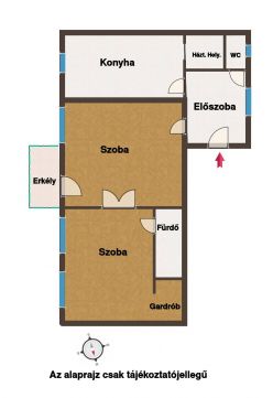 Két jól használható szoba, külön konyha, háztartási helyiség, gardrób, kádas fürdő és külön WC áll rendelkezésre, valamint erkély és tágas előszoba teszi kényelmessé az otthont.