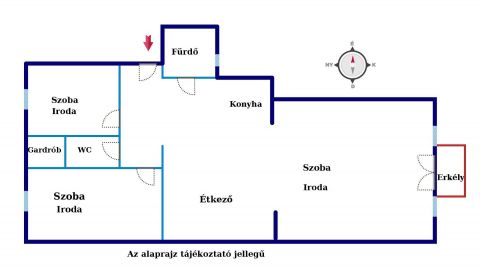 Az ingatlan 1+2 szobás, erkélyes, keleti fekvésű, napfényes praktikus elrendezésű.