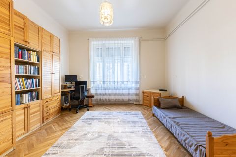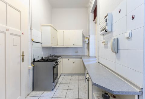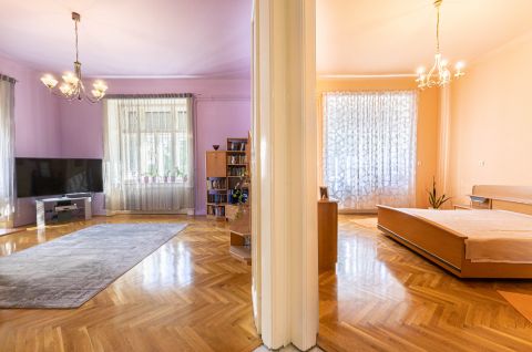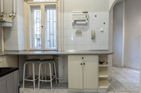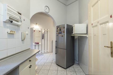 A lakás klasszikus polgári hangulatát a magas belmagasság, az eredeti kétszárnyú ajtók és a szép állapotú szalagparketta adják. A nagy ablakoknak köszönhetően a lakás napfényes, világos, egész nap kellemes térérzettel.