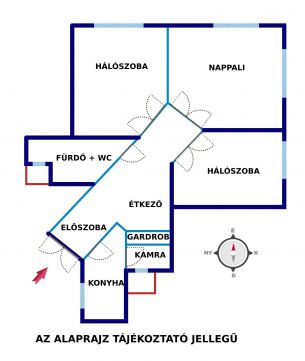 Az ingatlan 3 külön nyíló szobával és egy nagy, jól használható étkezővel rendelkezik, a konyha külön helyiségben, kamrával kapcsolódik. Az elrendezés ideális több együtt költözőnek, családnak, vagy akár csendes irodai használatra.