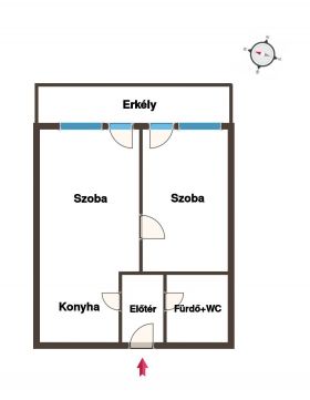 A lakás hasznos alapterülete 44 nm, ehhez a 9 nm terasz felét hozzáadva jön ki a megjelölt 49 nm.