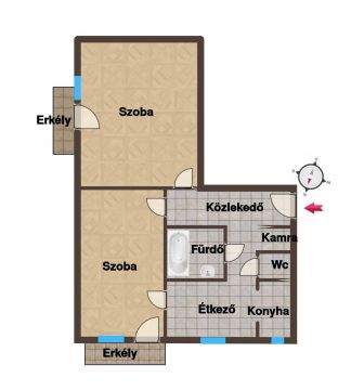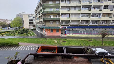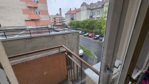 Szombathely belvárosában, a Szelestey L. utcában eladó egy első emeleti, téglaépítésű, két szobás, dupla erkélyes lakás.