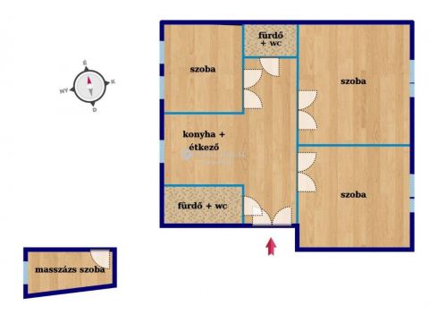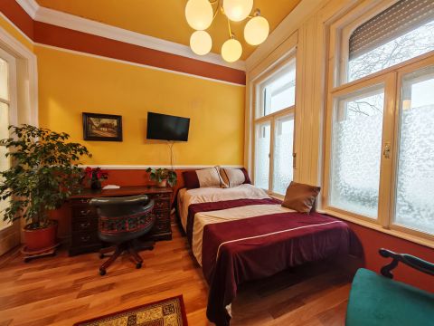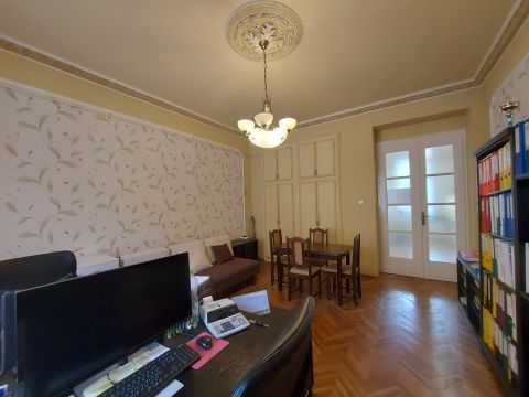 A jelenleg irodaként funkcionáló, magasföldszinti ingatlan egy modern lakás minden elvárásának megfelel. A 3 szobához 2 fürdőszoba tartozik, mindenhol tágas terek, nagypolgári hangulat uralkodik. Az ingatlanhoz tartozik még egy jelenleg masszázs szobaként használt elkülönült helyiség minikonyhával és zuhanyzóval, amely a folyosóról nyílik. Ez önállóan is használható akár egy felnőtt gyermek önálló lakosztályaként, vagy vendég lakosztályként.