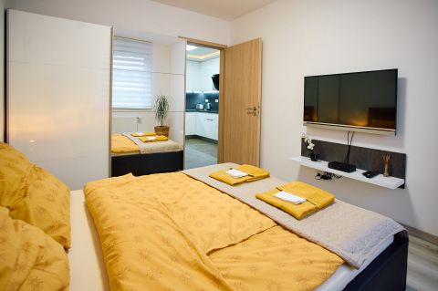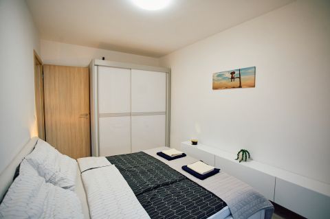 A modern fürdőszoba sarokkáddal és a beépített gardróbos előtér a kényelmet szolgálják, míg a 24 m²-es erkély ideális helyszín reggeli kávéhoz, baráti beszélgetésekhez vagy nyári vacsorákhoz.