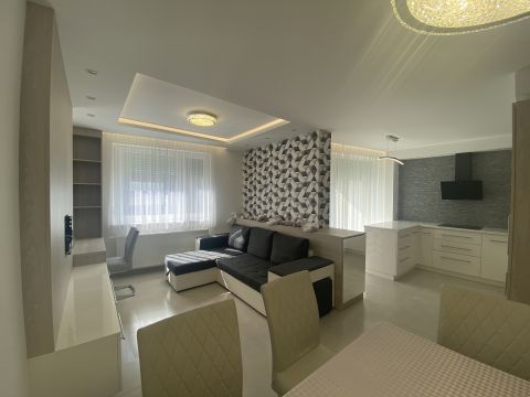 Győr-Marcal II. városrészben 2019-ben épült liftes társasházban hosszútávra kiadó egy 65 nm-es 2 szoba + nappalis amerikai konyhás, klimatizált, erkélyes lakás.