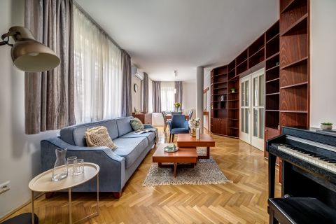 Eladó egy igényesen felújított, 98 m²-es földszinti lakás a 3. kerület Folyondár utca rendezett szakaszán, csendes, belső kertre néző részén.