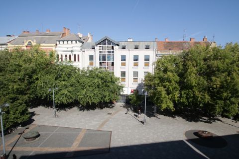 A nappali és a konyha a Fő térre néz, így tényleg a belváros szívében élvezhetjük a mindennapokat. A lakásban az ablakokat korszerű hőszigetelt műanyagra cserélték, redőnnyel és rovarhálóval szerelték fel.