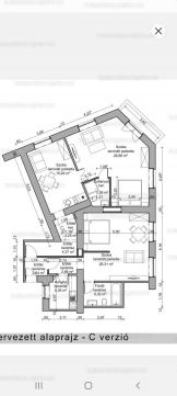 A kisebbik lakrész 39 nm, helységei: előszoba, konyha, fürdő WC-vel, káddal, és egy 26 nm-es tágas szoba.