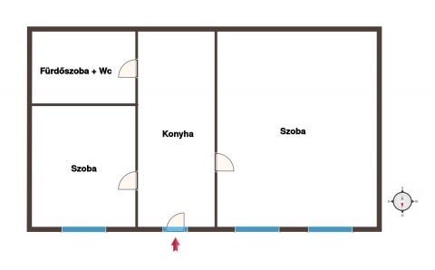 Az ingatlanban egy tágas nappali, egy hálószoba, egy fürdőszoba + wc, és egy konyha helyiségek kaptak helyet. Elrendezése kiváló, jól berendezhető.