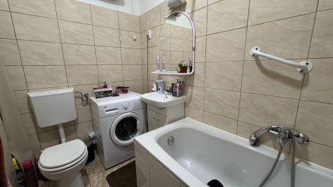 A lakás 34m2-es, a társasház magasföldszintjén található.