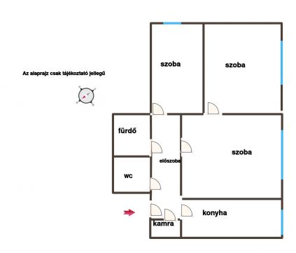 3 nagyméretű szoba ( melyből 2 külön nyíló), konyha, fürdő, külön WC