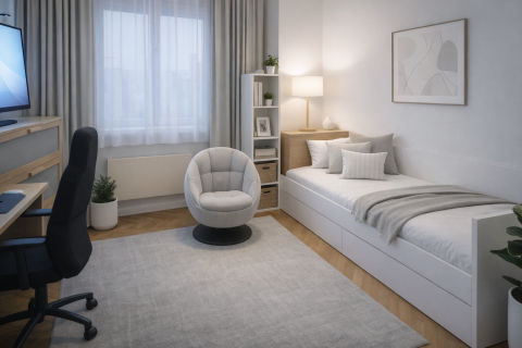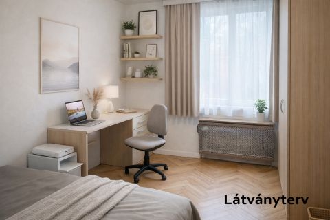 - Északkeleti tájolású nappali és hálószoba, utcai kilátással