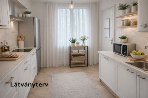 - Délnyugati tájolású konyha és szoba, parkra néző zöld panorámával