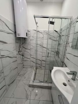 A helyiség új járólapot és csempe burkolatot kapott, teljesen új zuhanyzó került beépítésre szaniterekkel