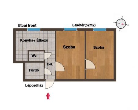 Az átlagosnál magasabb belmagasság és DNY-NY-i tájolás tágas - világos komfortérzetet nyújt.