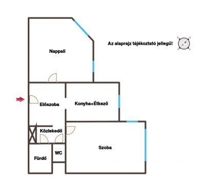Az ingatlanban tágas előtér, nappali, konyha+étkező, nagyméretű hálószoba, wc, valamint egy fürdőszoba került kialakításra.