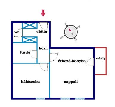 A nyílászárókon redőny található, fűtése egyedi mérőórás házközponti és padlófűtés