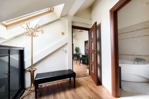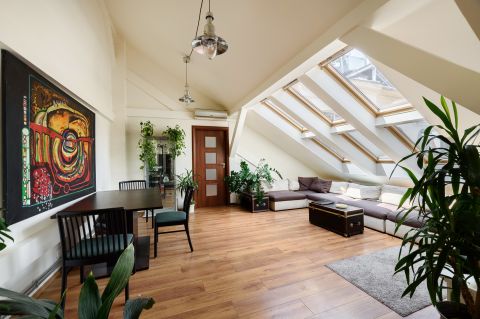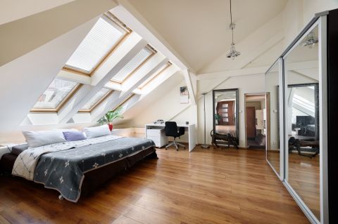 A tetőtérből kialakított lakás felújított és felszerelt.