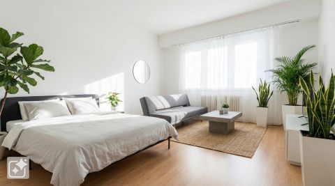 - Hálószoba csendes, belső kertre néző ablakokkal