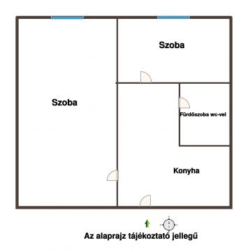 A lakásban található 1 nagyobb szoba , 1 kisebb szoba , fürdőszoba wc -vel , konyha.