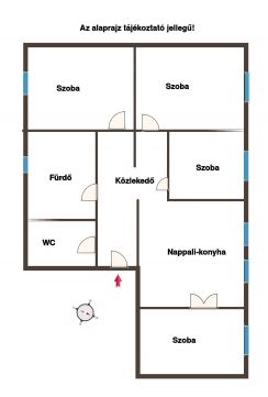 Alapterület: 104 m2, nappali + 4 hálószoba