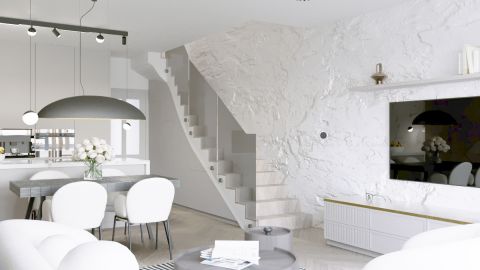 A nappali nagy méretű nyílászáróval kapcsolódik a külső teraszhoz és kerthez. Fűtés-hűtés és melegvíz ellátásról a lakásonként beépített hőszivattyúk gondoskodnak, helyiségenként szabályozható a padlófűtés és a mennyezethűtés.
