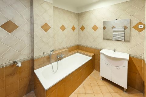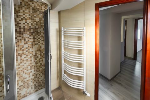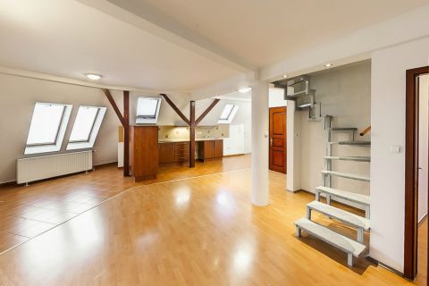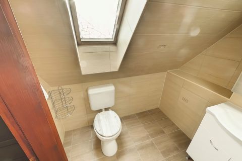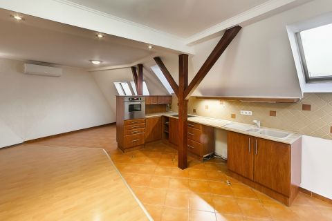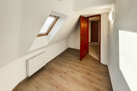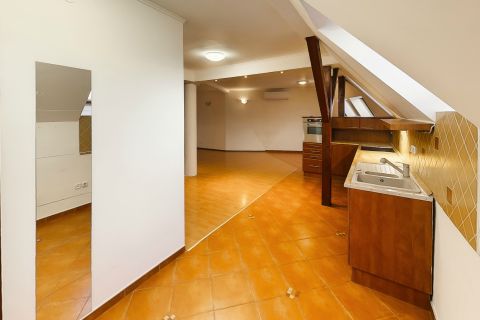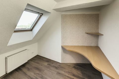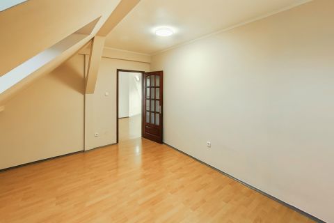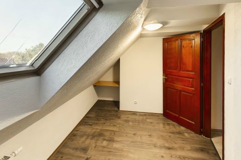 A lakás fiatal építésű, a harmadik emeleten található. Lent a nappali mellett két hálószoba, fent a tetőtérben három további szoba kapott helyet. Két fürdőszoba, beépített, gépesített konyha és 9 m²-es terasz teszi kényelmessé a mindennapokat.