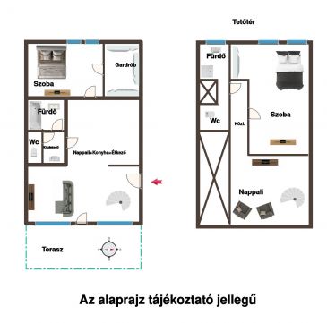 nappali+amerikai konyha, 2 szoba, 2 fürdőszoba, 2 WC, 16 nm nyitott terasz