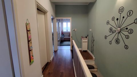 Az emeleten 3 külön nyíló szoba, egy gardróbszoba és egy fürdőszoba Wc-vel található. A nagyobb hálószobából panorámás erkély nyílik. Az ingatlan az elmúlt 5-6 éveben fokozatosan felújításokon esett át. Kicserélődtek a burkolatok és a konyhabútor. Mindenhová hőszigetelt műanyag nyílászárók kerültek. A villanyvezetékeket kicserélték és konvektor helyett korszerű gáz cirkó fűtést szereltek be radiátoros hőleadással.
