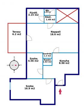 Az ingatlan 66 m2-es, 2 különnyíló szobával, egy nappalival és külön konyha-étkezővel rendelkezik.