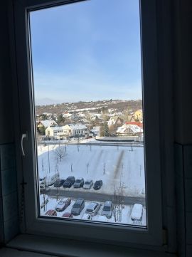 A K-re, ÉK-re is tájolt lakás rendkívül világos, örök panorámás az Ezüsthegy, Pusztadomb felé.